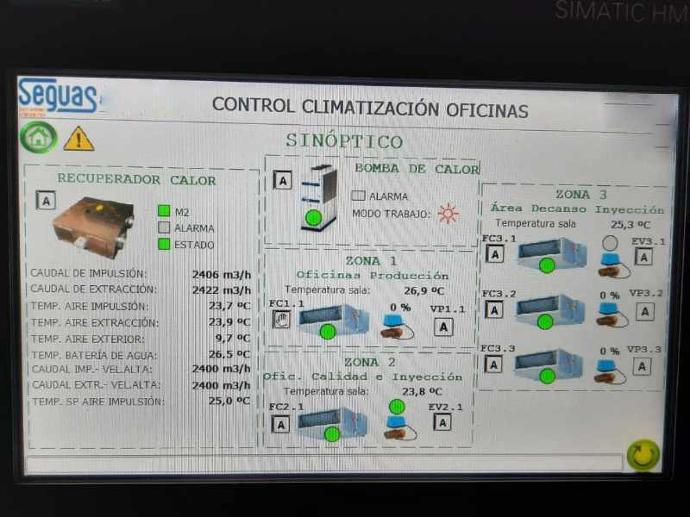 Finalmente, se instala un nuevo sistema de gestión centralizado para controlar las demandas térmicas de las diferentes áreas y así poder determinar el modo de trabajo (frío o calor) de la bomba de calor. Además de controlar el funcionamiento de las válvulas proporcionales de los equipos fancoils y ventiladores.