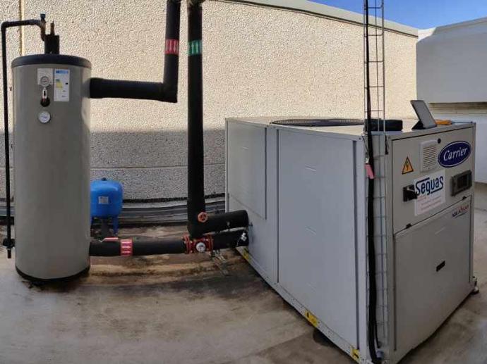 Mediante la implantación de una bomba de calor de la potencia requerida y alta eficiencia energética compuesta con un módulo hidrónico que incorpora una bomba de agua de caudal variable, aseguramos el enfriamiento o calentamiento del agua en las condiciones necesarias para que el sistema, formado por fancoils, satisfaga las demandas térmicas del personal de las diferentes áreas.